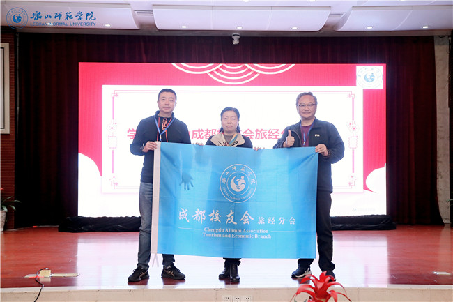 向勇代表校友总会宣读了《关于同意乐山师范学院成都校友会旅经分会成立及第一届理事会成员名单的批复》,向旅经分会第一届理事会成员表示热烈祝贺。陈范华为成都校友会旅经分会授旗。邓健、徐秀云为第一届理事会成员颁发聘书。