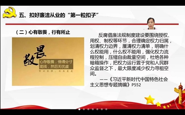 本网讯(图/张雯,文/郑淑瑜)6月9日上午,pg娱乐电子游戏官网入口党委书记徐秀云在学院102实验室以线上线下相结合的方式,为学院全体毕业生党员讲了一堂廉洁专题党课。专题党课的主题为“深入学习贯彻习近平新时代中国特色社会主义思想,扣好廉洁从业的‘第一粒扣子’”。
