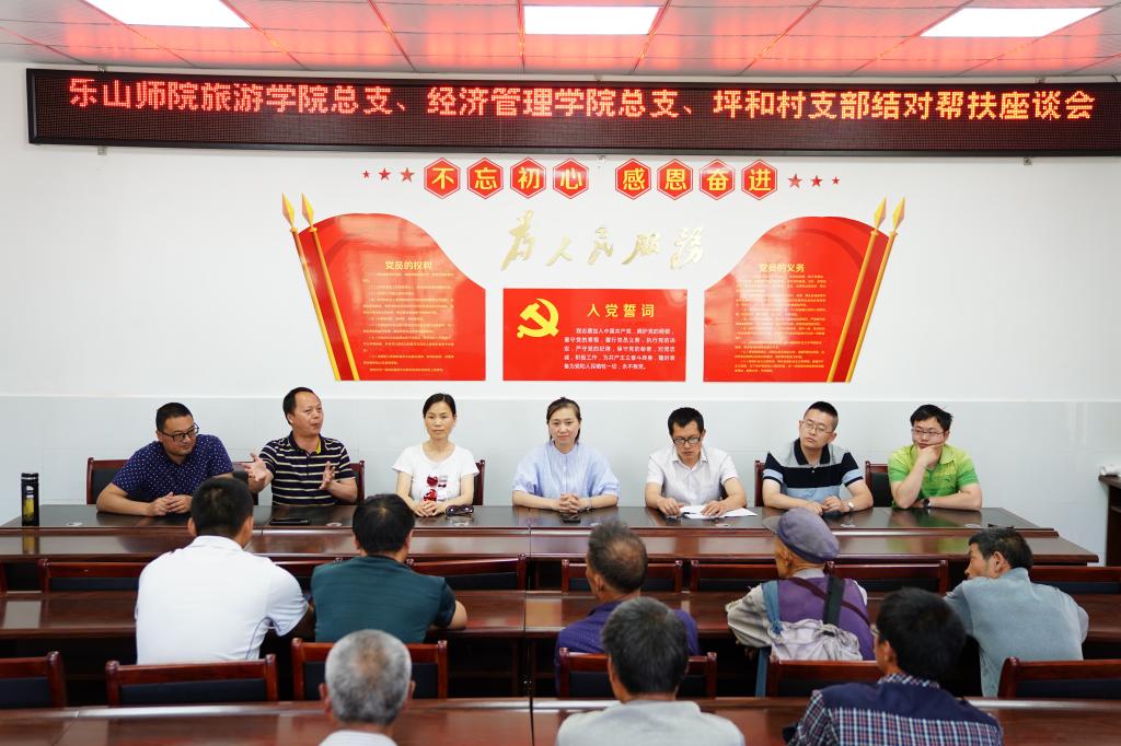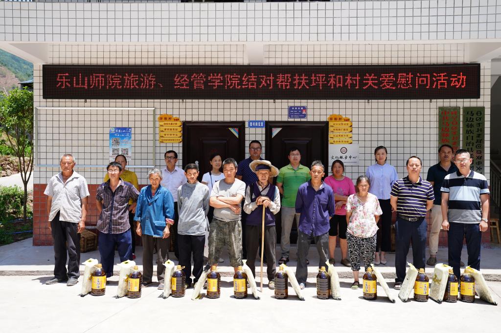 本网讯(文/徐秀云、图/杨晓军)5月19日,旅游学院党总支书记徐秀云、经济与管理学院党总支书记彭巧胤一行5人赴马边彝族自治县老河坝乡坪和村开展结对帮扶,与pg娱乐挂职马边彝族自治县扶贫和移民工作局副局长、驻老河坝乡坪和村工作队队员周绍炳,挂职马边彝族自治县教育局副局长、驻老河坝乡坪和村工作队队员何志伦,学校驻老河坝乡灯塔村工作队队员刘秋和王苦舟一起,在老河坝乡坪和村村委会与结对帮扶的十二户老乡亲切座谈。