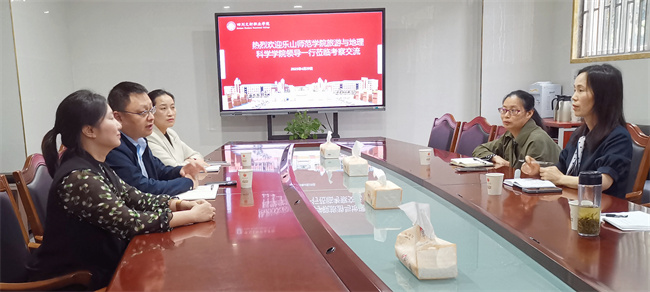 四川文轩职业学院党委副书记、副校长谢林见对徐秀云一行到校交流表示热烈欢迎。四川文轩职业学院管理学院副院长张春蕾介绍了学院的基本情况、近几年招生情况,重点介绍了学院4个专业群、15个专业、近几年旅游管理专业毕业生就业去向以及旅游管理与网络直播融合等内容,对未来与乐山师范学院pg娱乐电子游戏官网入口的合作进行了展望。
