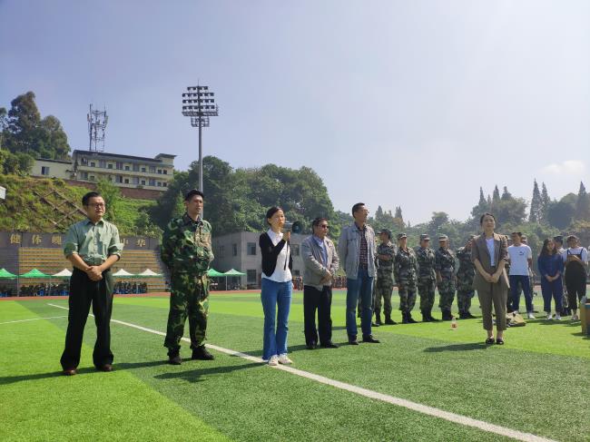 本网讯(文、图/王科霖)9月25日上午,旅游学院党总支副书记徐秀云(主持党务工作)、党总支副书记宋天华、副院长郑元同、副院长但强、学生科长左莉老师、16级辅导员王一鸣老师以及19级新生带班在北校区看望旅游学院军训新生与旅游学院学生教官。