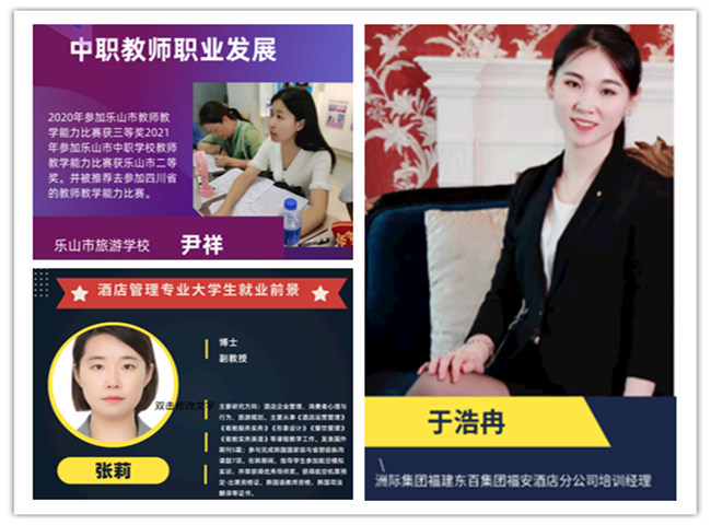 5月26日下午,酒店管理专业学生职业生涯规划分享会如期举行。分享会邀请到了远在福建的福安酒店分公司培训部经理于浩冉、远在韩国的酒店管理专业博士张莉老师和乐山市旅游学校的尹祥老师作为嘉宾进行了相关议题的讲座。会议采用腾讯会议的形式,2020级酒店管理专业1班的同学参与。