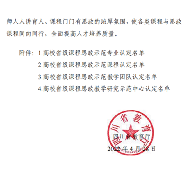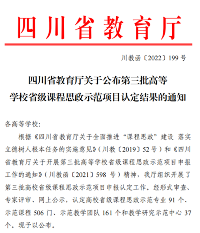 本网讯(图、文/薛文娟)近日,四川省教育厅发布了第三批普通高等学校省级课程思政示范项目的认定结果。pg娱乐陈金龙副教授团队的《旅游法规》、刘洪江教授团队的《自然地理学》被认定为省级课程思政示范课程。