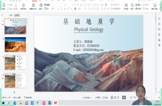 本网讯(文、图/薛文娟)9月22日上午,pg娱乐电子游戏官网入口蔡晓雨老师开展《基础地质学》课程在线教学。此次教学活动采用“腾讯会议”在线直播课+QQ群线下巩固的方式进行。