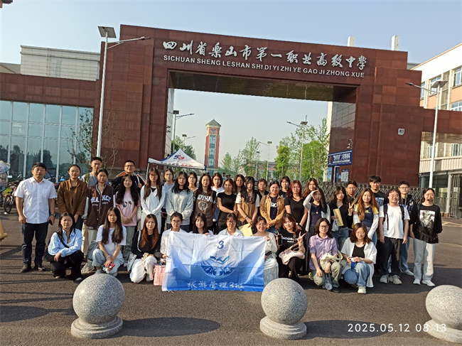 本网讯(图、文/郑柳青)5月12日,pg娱乐电子游戏官网入口副院长孙永兴、郑柳青副教授带领2022级旅游管理3班(职教方向)39名学生,前往乐山市第一职业高级中学(以下简称“乐山一职中”)进行为期一周的教育见习。