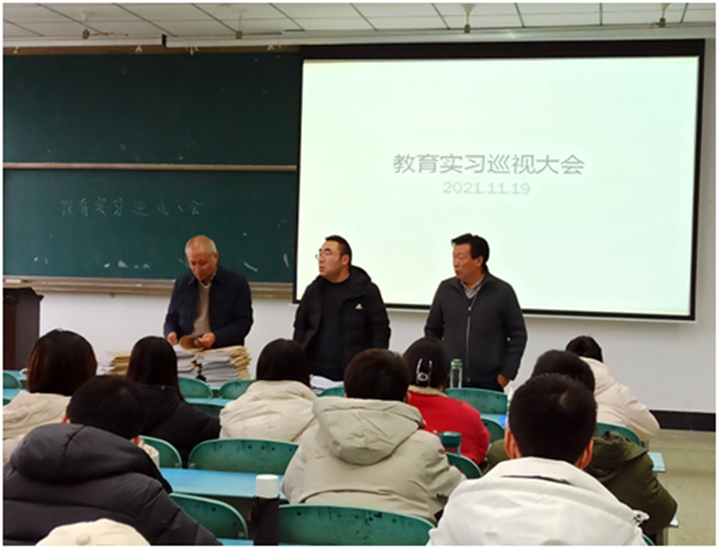 本网讯(图、文/王兴会)近日,乐山师范学院教育实习巡视组关北光教授、毛加宁教授、刘猛老师对旅游学院教育实习工作展开第二轮检查,教育实习巡视大会在行知楼225教室召开,会议由旅游学院实习带队教师郑柳青主持。