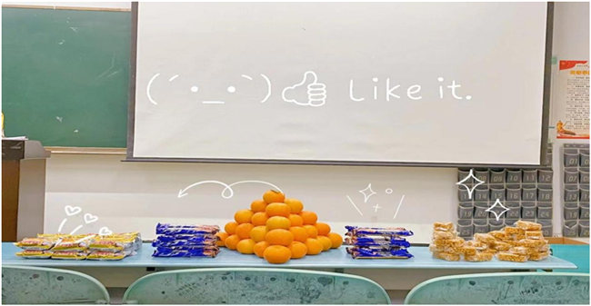活动中,同学们通过分工配合,经过半小时的头脑风暴与创意设想,最终完成了茶歇摆盘。最后,汪舟老师对各班的活动成果逐一进行点评,并展示了往届同学的优秀成果。