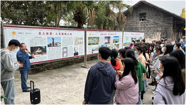 井研县的主要见习地点是研溪湿地公园和雷畅故居。研溪湿地公园围绕“一园、两心、六区、八景、多节点”综合打造,有“花舞观湖”和“水舞画湖”两心,设彩田花溪、斑斓岛、人文岸、养心谷、活力湾、画韵岛共六区,共分布了11个景观节点和32个次级节点。据介绍,研溪湿地作为茫溪河综合治理工程的重要组成部分,2018年建成至今发挥了重要的生态补水净水功能。同时,其秉承“山彩水蓝,画意井研”的设计理念,将井研本地盐文化、恐龙文化、人文文化及其他多方面历史文化融入其中,打造以生态休闲为主题的自然山水园林式综合性公园,已成为井研“青山绿水”的文旅名片。雷畅故居位于井研县千佛镇,现为四川省重点文物保护单位。据了解,雷畅故居距今有两三百年的历史,是目前川西南地区规模最大、保存较为完好的一座民居。故居占地4000平方米以上,拥有大小天井12个,房舍121间,其建筑布局严谨,木石雕刻工艺精美,是中国川西南明清民居建筑之典型,具有极大的保护利用价值。