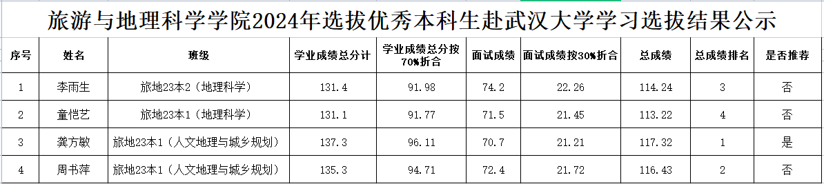 根据《关于2024年乐山师范学院与武汉大学联合培养本科生选拔工作的通知》和《pg娱乐电子游戏官网入口选拔优秀本科生赴武汉大学学习方案》,经学生自愿申请、学院初审和面试,现将选拔结果予以公示。公示期3个工作日,从即日起至2024年5月28日。如有异议,请于5月28日前以真实姓名向pg娱乐电子游戏官网入口反映,电话0833-2272667。