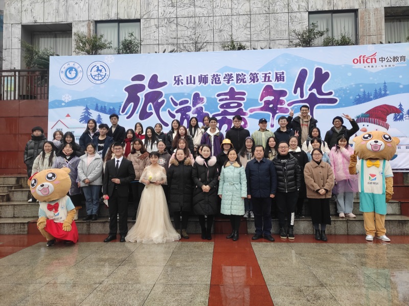 本网讯(文/刘李、余李图/廖燕茹、范雨季)12月3日中午,旅游学院在桂花广场举办乐山师范学院第五届旅游嘉年华,现场参加本次活动的领导和老师有校团委书记李东、旅游学院党总支书记徐秀云、学生科科长左莉,辅导员王一鸣、谭妙和郑曾俊。