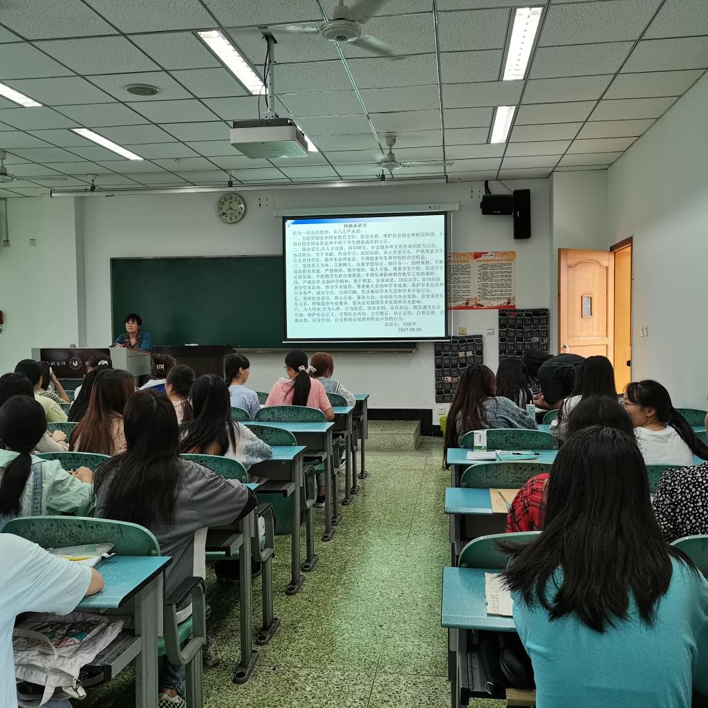 本网讯(文、图/杨江双)金秋送爽,丹桂飘香,暑去秋来,新的学期随之来临。为了践行“弘毅自强,笃学践行”的校训,培养同学们尊师重道的良好品质,规范学校的教学秩序,2021年8月31日,旅游学院所有教学班在新学期的第一堂课上开展了“学德承诺”活动。