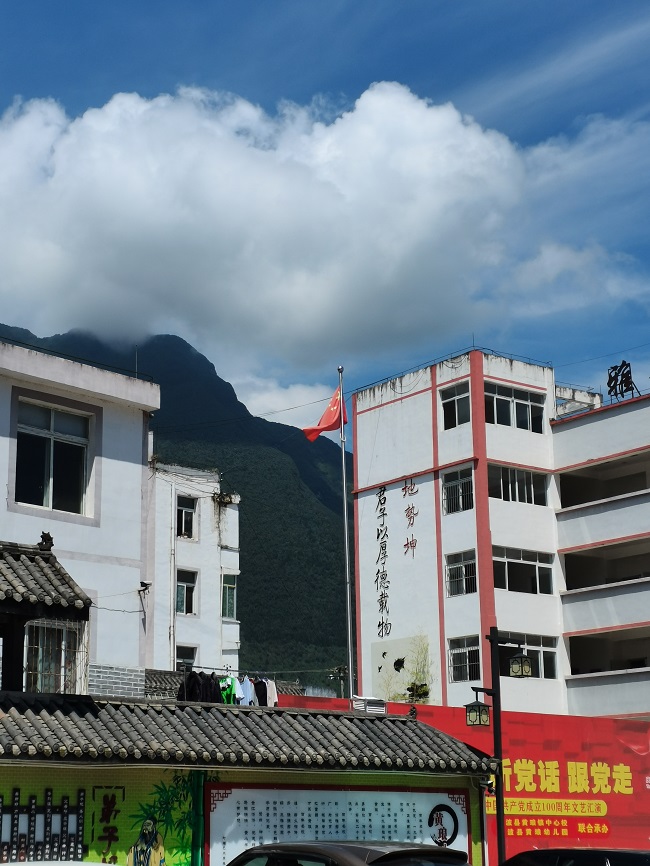 清晨,我们从学校出发坐上大巴车踏上了支教之路,去往凉山州。我们从山脚沿着曲折的公路来到了黄琅镇中心校。第一天到黄琅镇时,感觉这是一个十分有韵味的乡间小镇。这里靠近风景优美的旅游区——马湖,在镇上有着马湖的一部分,清澈见底的湖里有许多锦鲤在游来游去,十分快活。