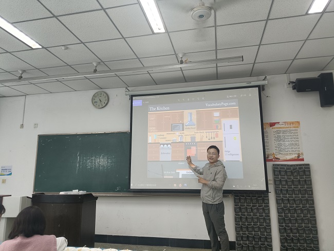 首先刘老师向大家做了自我介绍,鼓励同学们多开口说英语。接着以图为辅,从衣食住行向大家介绍了西方家庭中的各种物件,让学生在学习英语单词的过程中了解到西方文化习俗,开拓了视野。最后刘老师组织同学们以小组为单位积极练习英语口语,本次活动在师生共同交流的和谐画面中圆满结束。