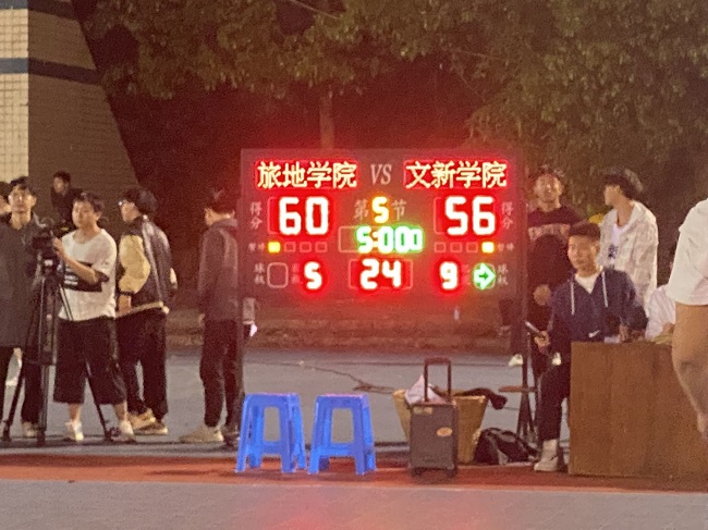 裁判哨声响起,双方球员迅速进入状态,你争我夺,你追我赶,比赛十分激烈。双方球员动作灵敏,技术娴熟,精彩不断,引得场下同学欢呼连连,双方加油声不绝于耳。经过鏖战,绝平和加时再战,最终旅地学院以60:56赢得了比赛。