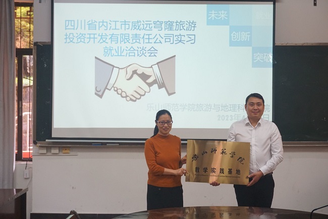 本网讯(文/江馨雨、图/张雯)近日,旅游与地理科学院邀请四川省内江市威远穹窿旅游投资开发有限责任公司到学院实验楼102教室开展了实习就业洽谈。学院院长郭剑英、副院长孙永兴、2020级辅导员孟凡帅老师以及该公司执行董事兼经理郭飞、综合管理部部长王一璠参加了此次洽谈会。