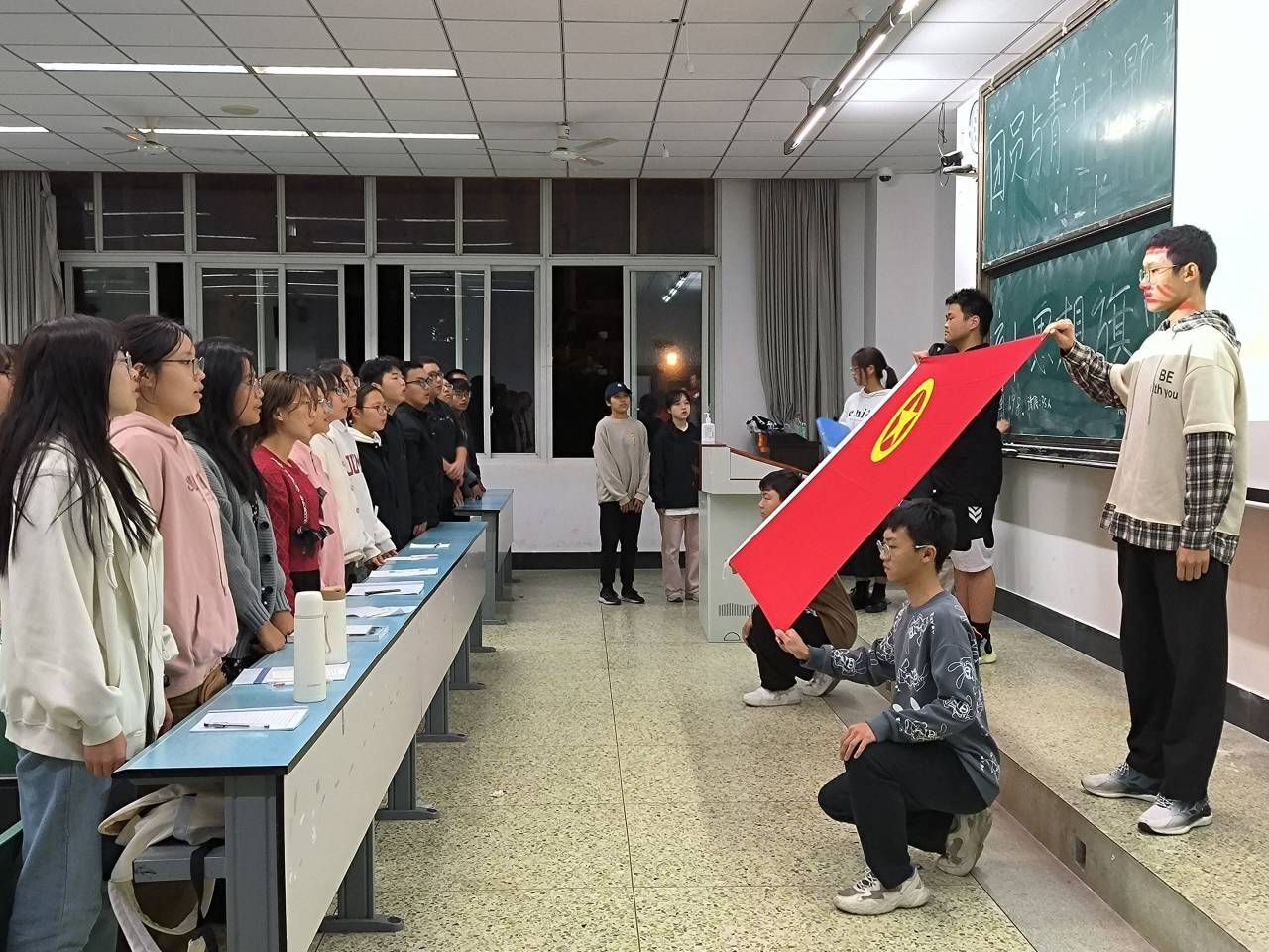 最后,全体同学重温入团誓词,坚定当好党的助手和后备军的信念。本次会议圆满结束。