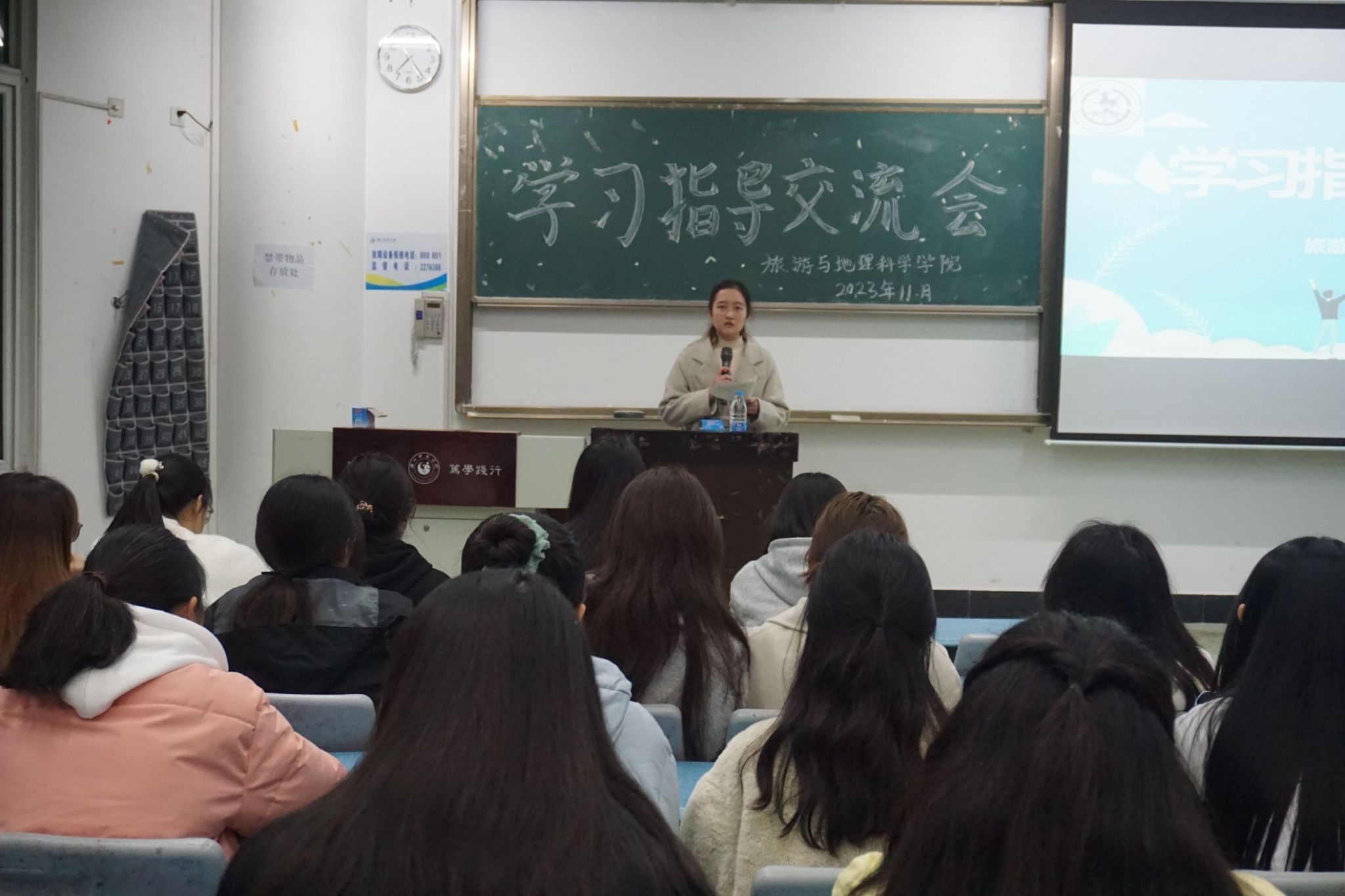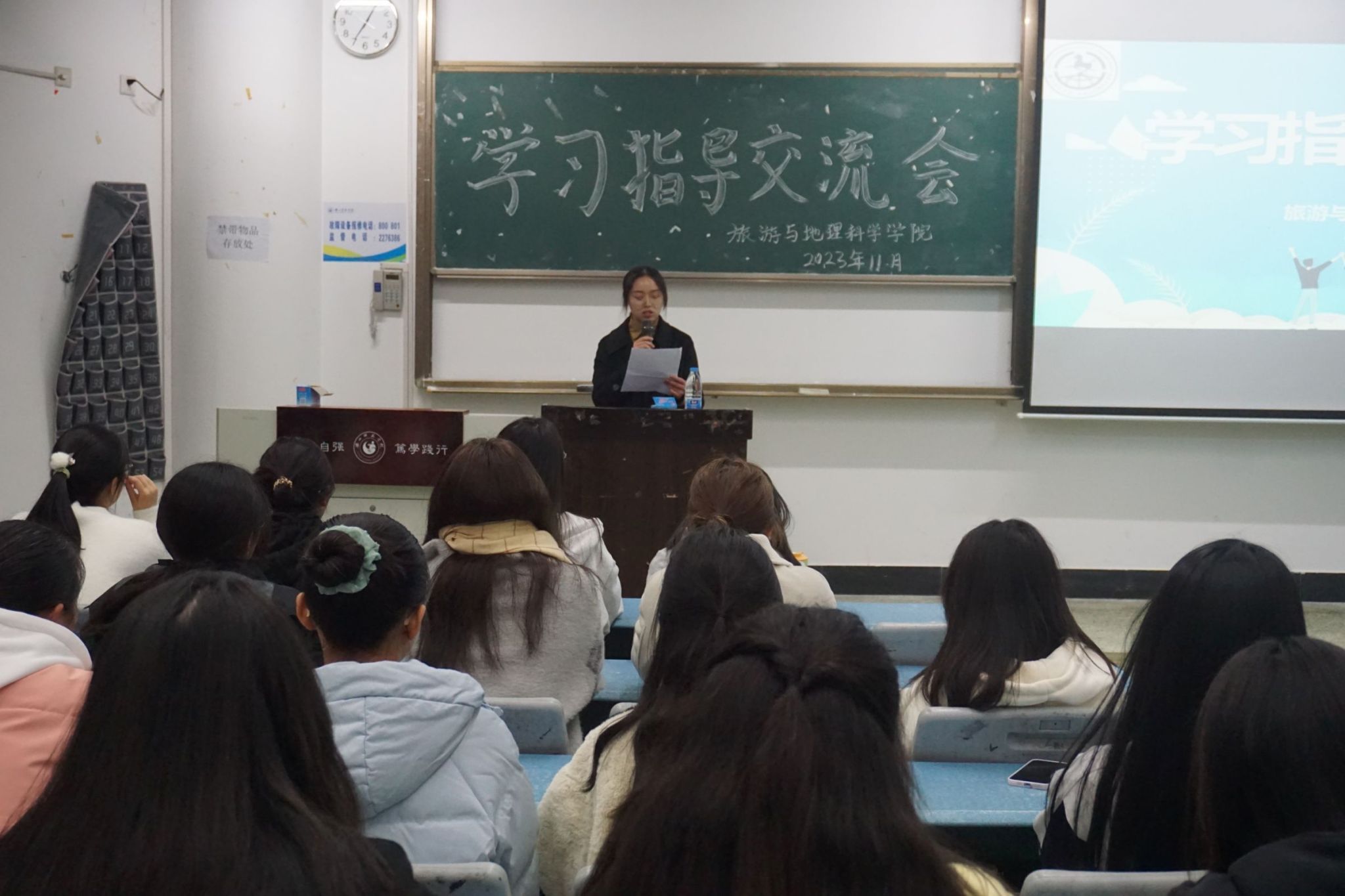 本网讯(文/林海珍、图/卿婷)12月10日,pg娱乐电子游戏官网入口在行知楼214教室举行了学习指导、交流会。学院学生工作办公室主任、23级辅导员江纳,各专业优秀学生代表以及23级全体同学参加了本次会议。