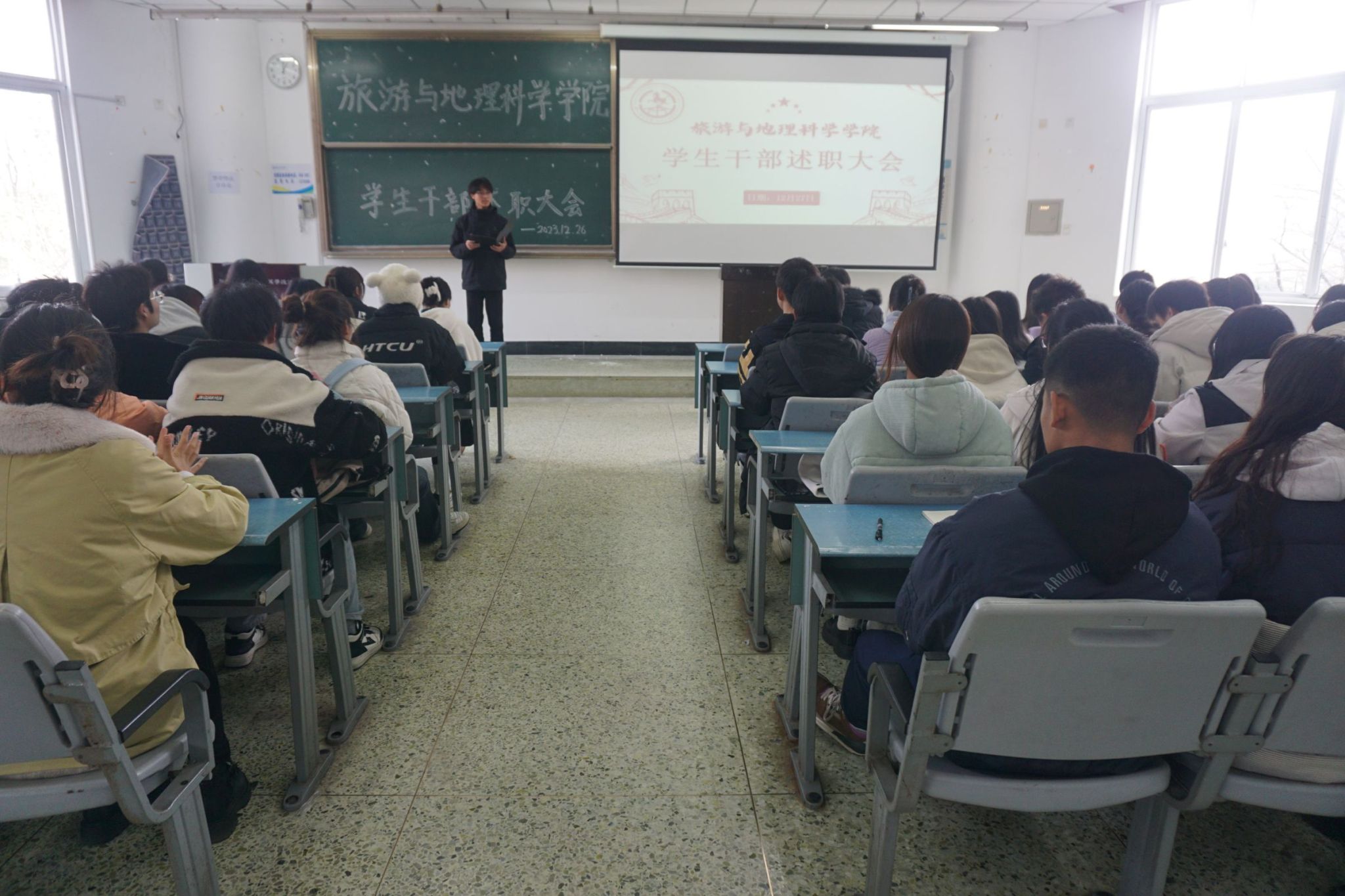 本网讯(文/卿婷、图/王东梅)12月26日,pg娱乐电子游戏官网入口在行知楼214教室召开了学生干部述职大会。会议由学生分会副主席罗佳元主持。pg娱乐电子游戏官网入口党委副书记、纪委书记冉勇以及分团委、学生分会、青年传媒中心全体学生干部参加了会议。