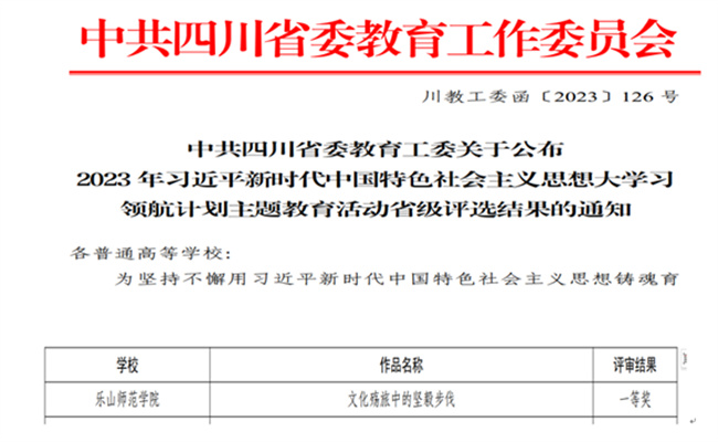 本网讯(文/钟婷、图/李美霖)根据中共四川省委教育工委《关于公布2023年习近平新时代中国特色社会主义思想大学习 领航计划主题教育活动省级评选结果的通知》,pg娱乐电子游戏官网入口李美霖团队作品《文化殇旅中的坚毅步伐》在“我心中的思政课”——2023 年四川高校大学生微电影作品活动中取得佳绩。