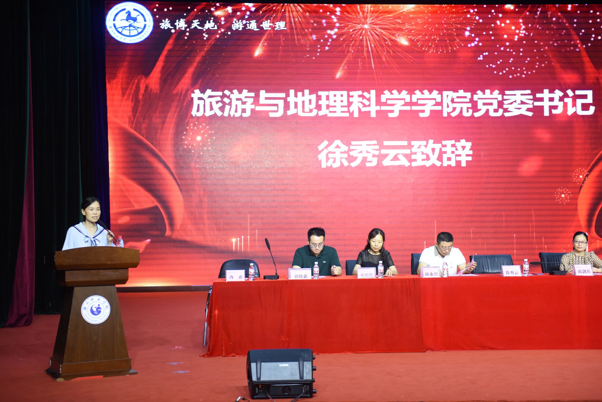 孙永兴宣读了学院2023-2024学年度学生先进个人及团队表彰决定,希望新同学们以优秀的师兄师姐为榜样,争做自强不息的旅地人。