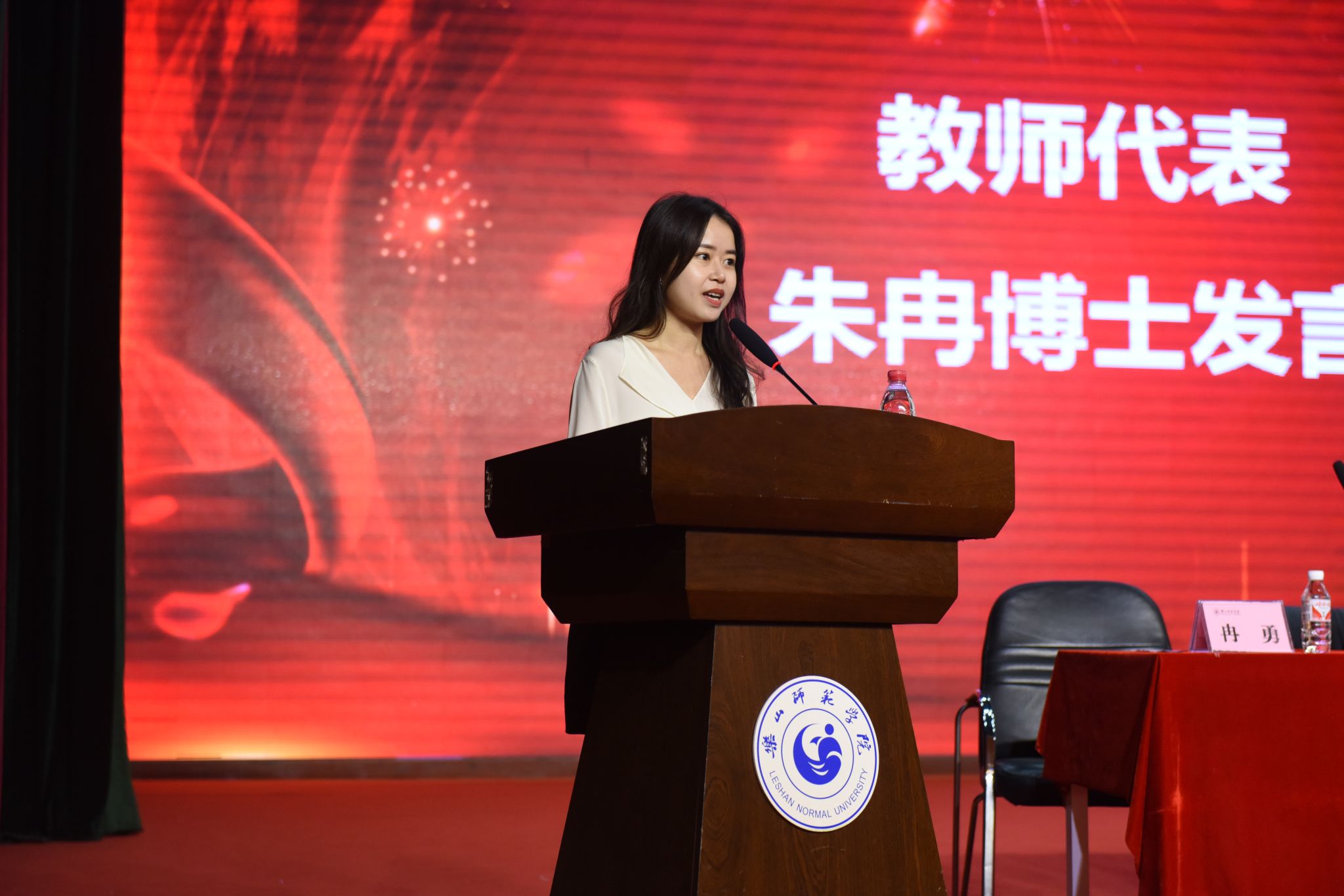 教师代表朱冉博士以“珍惜”为主题发言。她说,大学生活转瞬即逝,希望同学们珍惜当下、珍惜他人,珍惜自己,做坚韧、坚毅、坚强、坚定的旅地人。