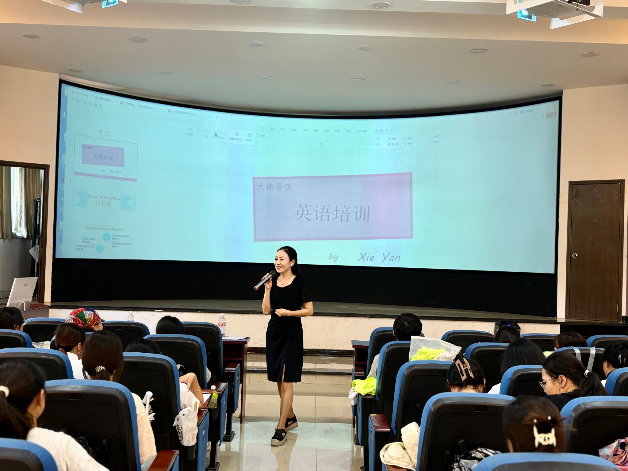 本网讯(图/袁浩、颜雪,文/杨斯涵),为了提升同学们的旅游英语水平和实际应用能力,pg娱乐电子游戏官网入口邀请谢艳老师于9月26日在3D实验室为22级、23级旅游管理专业学生组织开展了旅游英语培训。