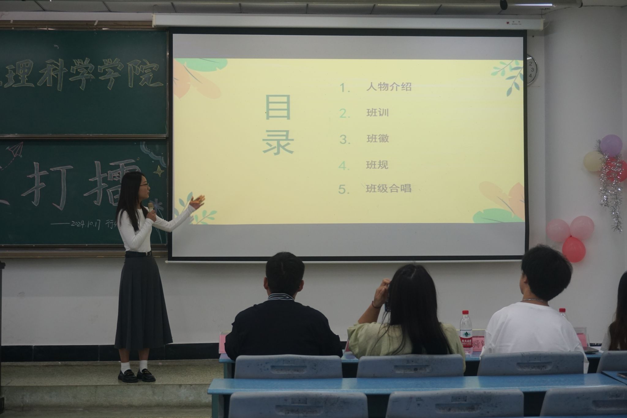 本网讯(文/周艳艳、图/陈淼)10月17日下午,pg娱乐电子游戏官网入口在行知楼414教室组织开展“三班打擂”活动。辅导员王强、班主任向婉丽、学院三大组织学生干部以及24级全体新生参加了本次活动。