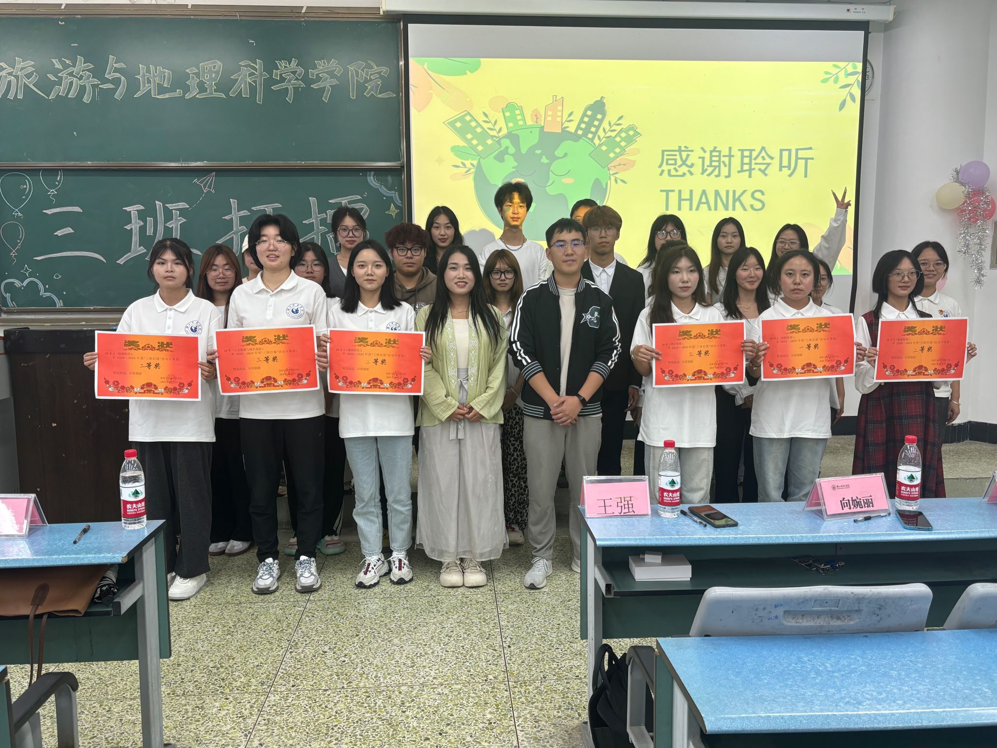 在主持人介绍了评委及比赛规则后,各班逐一上台,介绍了班级的班徽、班规及班训。随后各班表演了精彩的节目,从旅游管理一班具有民族风情的舞蹈到酒店管理班合唱的《我们的明天》,无不展现出各班的风采与魅力,给同学们留下了深刻的印象。比赛结束,旅游管理一班获得此次比赛的一等奖,由王强和学生分会主席杨舜钧为获奖班级颁奖。