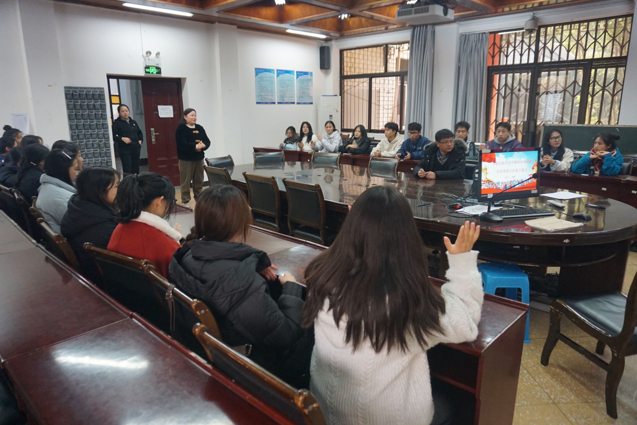 本网讯(文/邓伟祥、图/杨光)11月28日下午,pg娱乐电子游戏官网入口党委副书记、纪委书记冉勇,学生工作办公室主任、分团委书记江纳在旅院实验楼102教室和学院少数民族学生一起座谈。