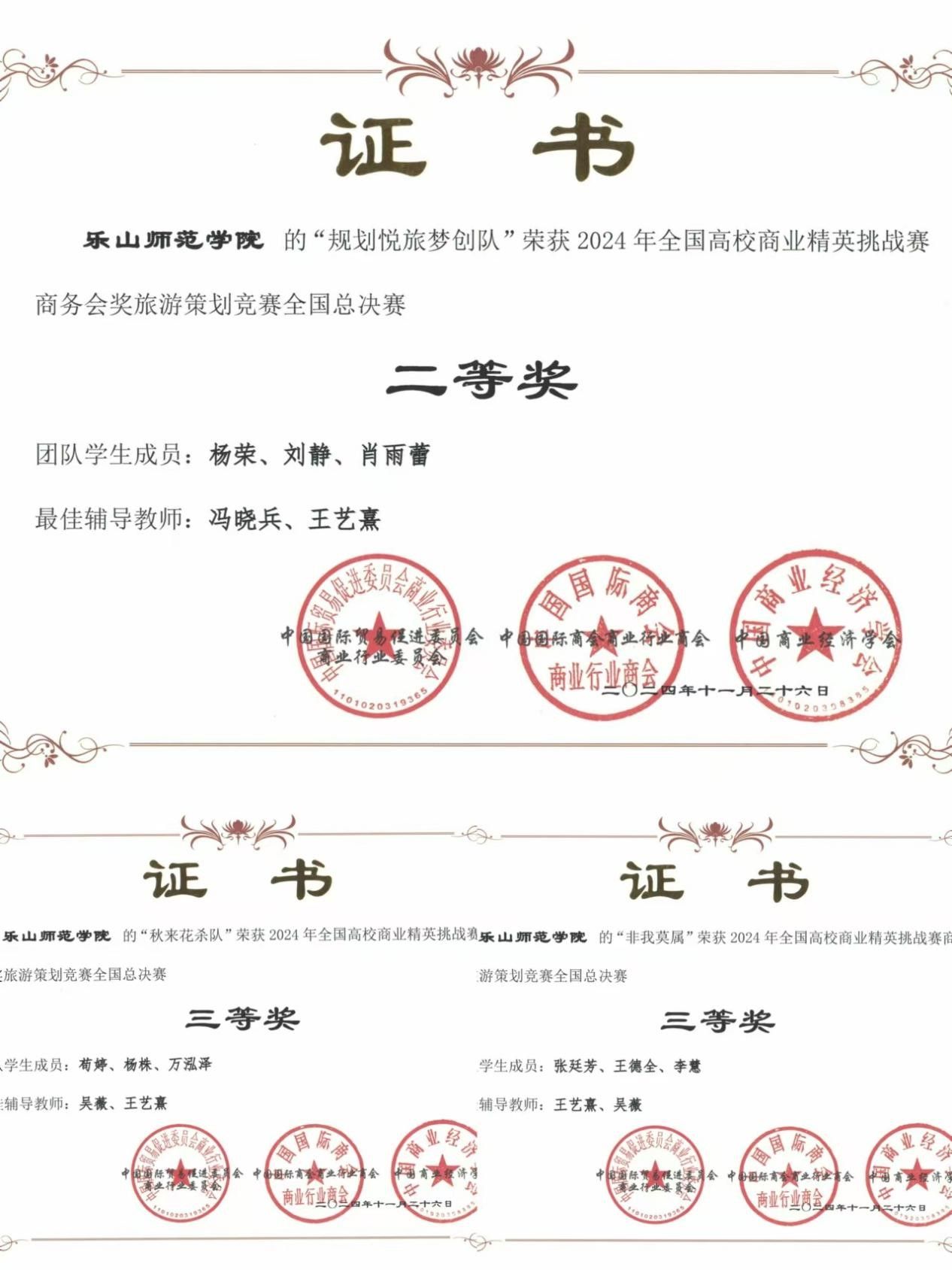本次竞赛不仅为参赛团队提供了一个展示自我、锻炼能力的平台,也推动了行业人才对国内旅游产业资源的深入了解,为地方提供了向外宣传的宝贵机会。pg娱乐电子游戏官网入口的三支参赛团队在冯晓兵、王艺熹、吴薇三位老师的精心指导下,深入挖掘市场需求,精心策划并设计了独具特色的商务会奖旅游方案。在比赛过程中,展现出了较高的专业素养和团队协作精神。