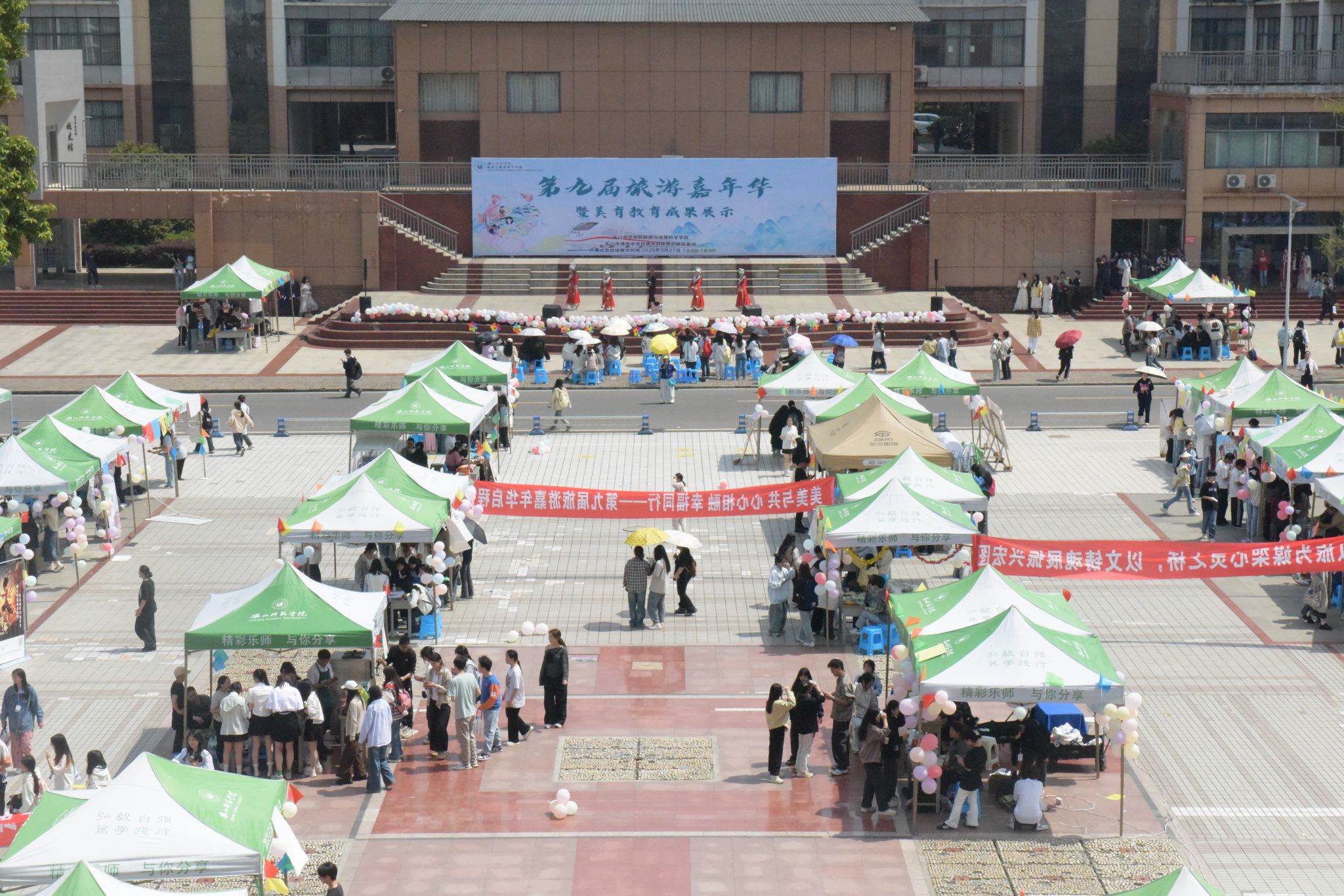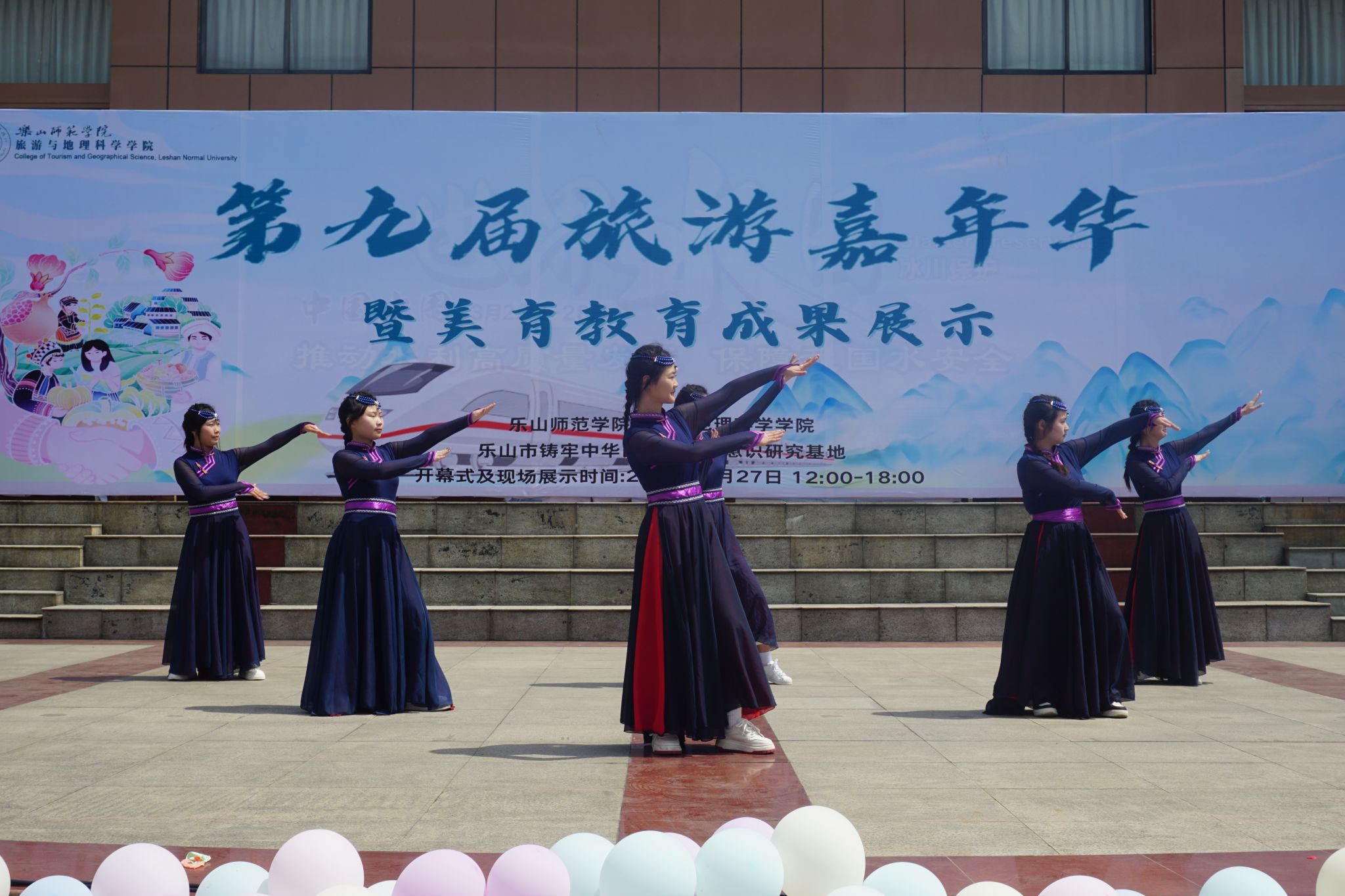 本网讯(文/王小龙、图/旅地青年传媒中心)3月27日,pg娱乐电子游戏官网入口(以下简称"旅地学院")在桂花广场成功举办第九届旅游嘉年华暨美育教育成果展。本次活动由pg娱乐电子游戏官网入口、乐山市铸牢中华民族共同体意识研究基地共同主办,学校美育教育中心指导。