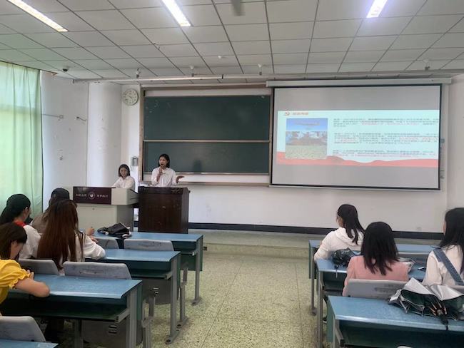 本网讯(文、图/郭雨晴)4月29日下午,旅游学院在行知楼214教室组织开展学生党员讲党史活动。负责本次党史讲解的是第一学生党支部的学生党员李小梅,参会人员有第一学生党支部书记郑曾俊、第二学生党支部书记谭妙和18级全体同学。本次活动从青年学了的视角发现、挖掘红色资源,讲述优秀共产党员的先进事迹,旨在引导青年学子厚植爱党爱国情怀,让革命薪火代代传承。