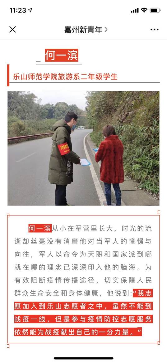 疫情当前,每个人都在为抗击疫情努力着。乐山市市中区的何一滨同学,也在基层志愿者工作中贡献自己的一份力,用实实在在的行动为家乡打赢疫情防控战而努力着。