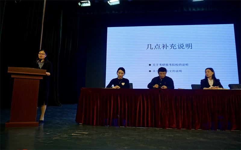 郭剑英为同学们分析了近几年考研动态与趋势,根据同学们的学科专业特点和实际情况推荐了考研的相关学科,鼓励同学们积极备考,增长学识,为考上自己理想的学校和专业而拼搏奋斗,不断提升自己的学历层次。