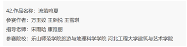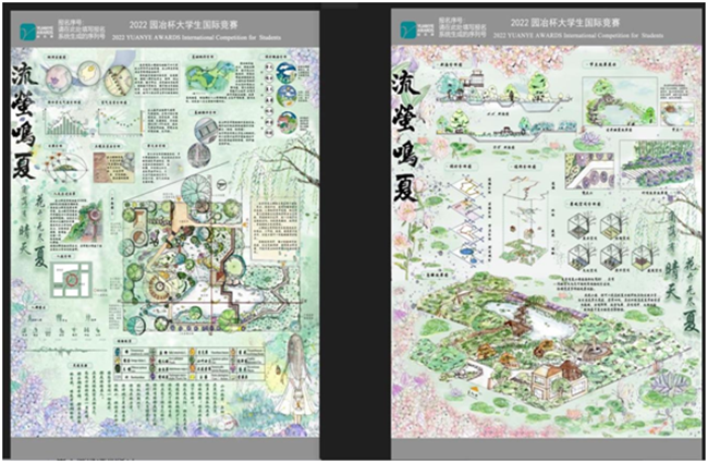 本网讯(文、图/宋雨晗)近日,pg娱乐电子游戏官网入口学子万玉姣等3人创作的《流萤鸣夏》小游园设计作品在第十三届园冶杯大学生国际竞赛课程设计中获得荣誉奖,指导教师为宋雨晗、康雅丽。