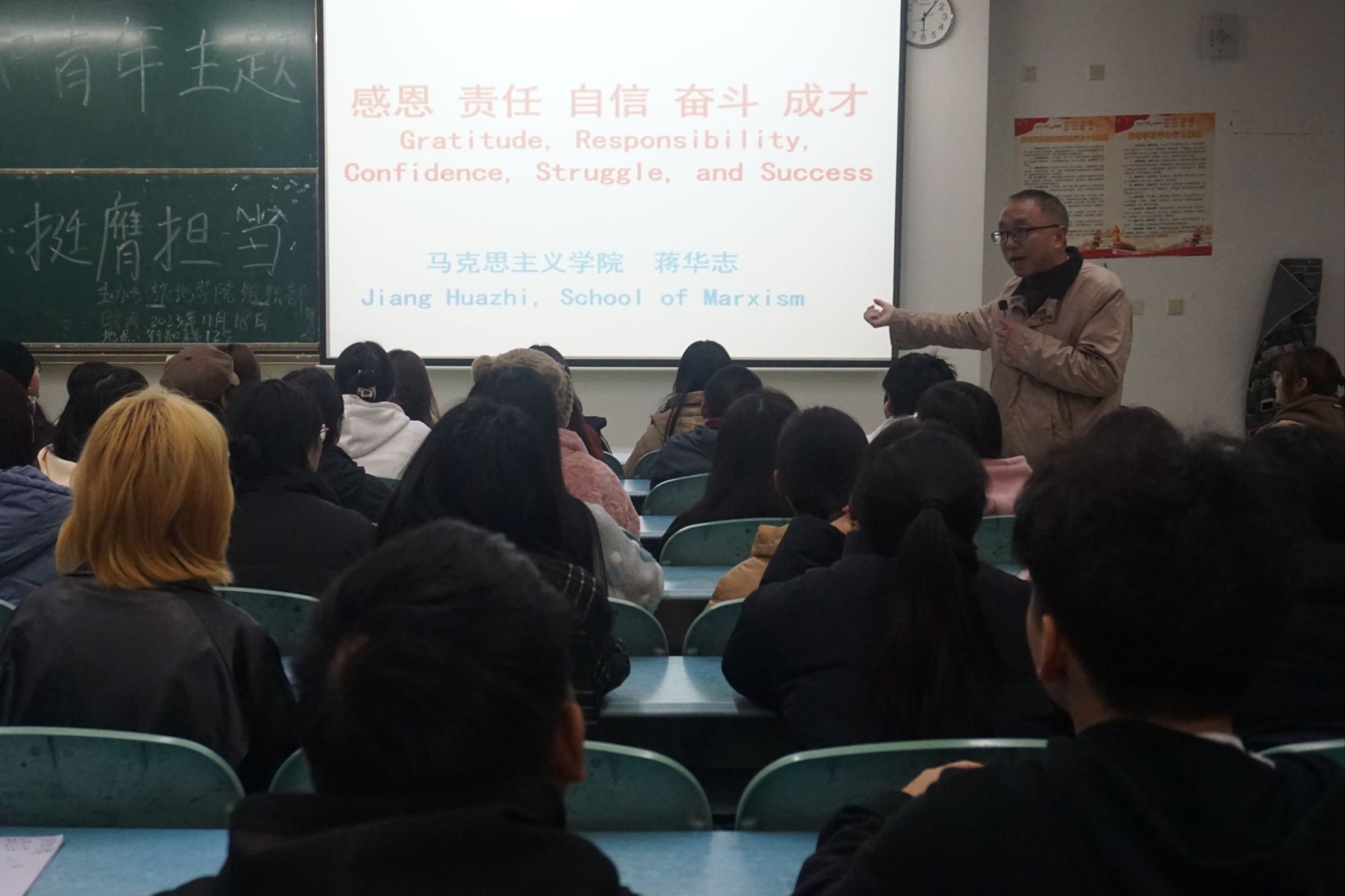 本网讯(文/王雪,图/卿婷)近日,pg娱乐电子游戏官网入口第四次主题团日活动在行知楼125教室顺利举行,本次团日活动特别邀请了马克思主义学院蒋华志副教授前来授课分享。