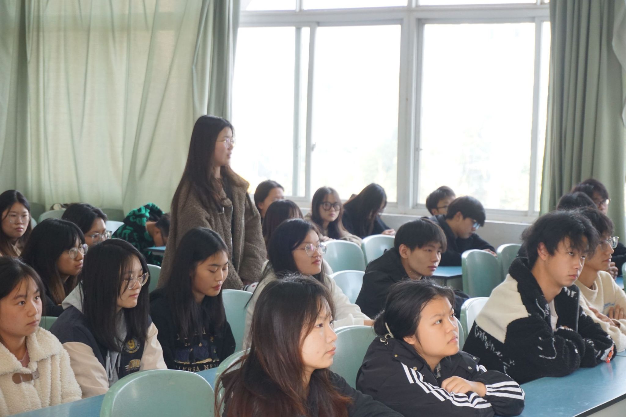 活动在迎团旗、唱团歌中拉开序幕。22级地理科学二班团支书李思洁带领同学们学习了习近平总书记的实践观,强调要做到“学思用贯通,知信行统一”。李思洁号召同学们要全面学习领会习近平新时代中国特色社会主义思想的科学体系、核心要义、实践要求,做到整体把握、融会贯通。她带领同学们学习了习近平总书记对青年一代的殷切希望,希望同学们明白“青春因磨砺而出彩,人生因奋斗而升华”的道理。