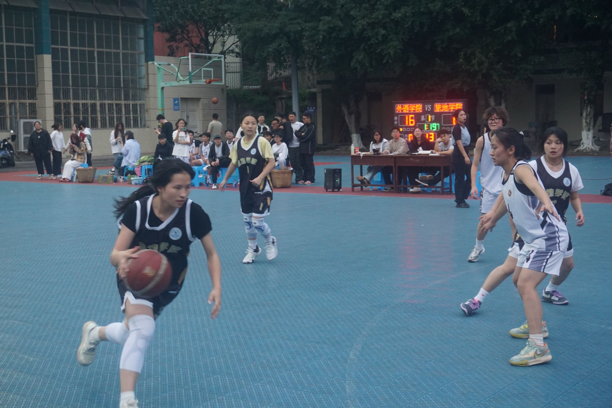 比赛伊始,双方迅速进入高强度对抗。外国语学院队员凭借灵活突破屡屡撕开防线,旅地学院则以精准三分球还以颜色。首节战罢,双方比分紧咬至21:18,赛场气氛持续升温。次节比赛中,旅地学院10号球员王磊连续完成抢断快攻,率队打出一波12:2的进攻高潮,半场结束时将优势扩大至45:30。易边再战,旅地学院展现战术素养,通过严密的区域联防限制对手得分,同时7号球员李强在内线连续强打得手。末节决战,旅地学院凭借默契的团队配合稳住局势,最终锁定胜局。