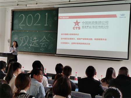 13点30分,学院先于实验楼102实验室举行了校企论坛。校企论坛由院长助理孙永兴主持。参加校企论坛的合作单位分别有江苏无锡欣旺集团、广州长隆集团、港中旅(珠海)海泉湾有限责任公司、深圳观澜湖集团、浙江开元酒店集团、成都大邑花水湾金陵温泉度假酒店、乐山盘龙开元名都大酒店、峨眉山恒邦艾美酒店、四川卞氏菜根香泡菜餐饮有限责任公司、峨眉山市印象御泉湾酒店管理有限公司、上海迪士尼度假区和成都世纪城洲际大饭店等企业。在校企论坛上,学校党委学生工作部副部长南麒致辞,热烈欢迎各方企业齐聚旅游学院,参加学院举办的双选会,并对双选会的流程作简单介绍。旅游学院院长郭剑英对2021届毕业生的情况,包括专业、人数、技能水平作了介绍,并对各企业单位给毕业生提供实习和就业机会表示诚挚的感谢。校企合作单位就旅游应用型人才培养自由发言,为学院提供了新的市场视角,为学院培养更加优秀的应用型人才提供了新思路。