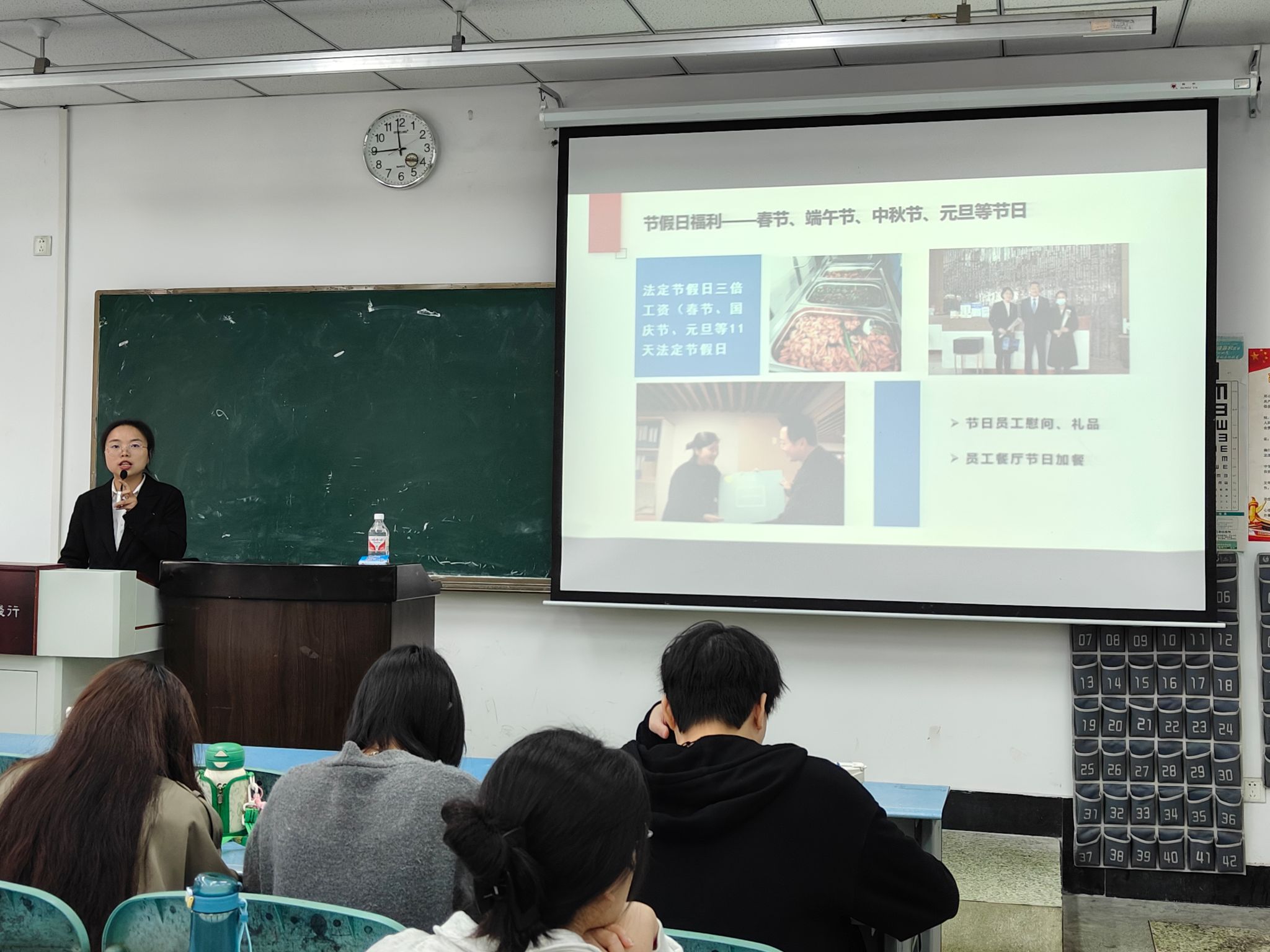 本网讯(文、图/陈佳炫)4月7日,pg娱乐电子游戏官网入口在行知楼213教室举办了“酒店管理职业发展路径”主题讲座。乐山高新翰文大酒店总经理张威携管理团队莅临指导,为学院2022级酒店管理专业学生带来一场理论与实践深度融合的职业规划讲座。