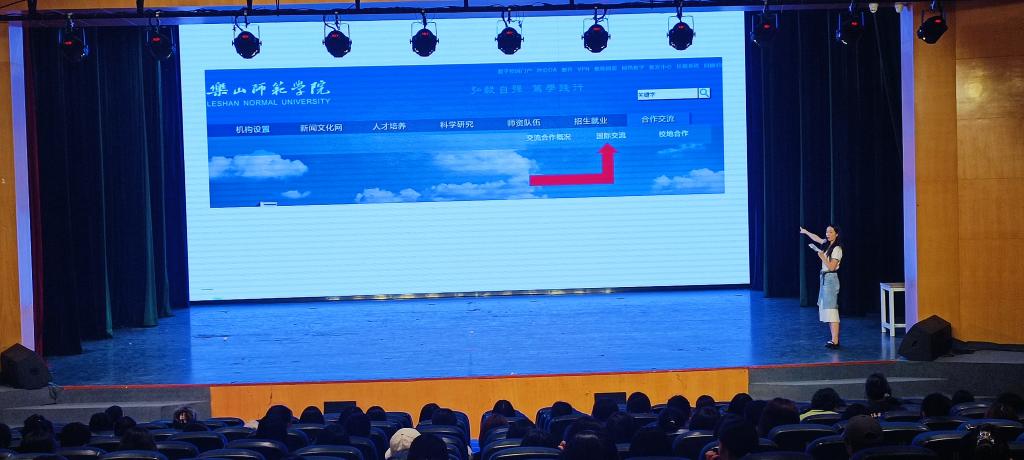 刘湘淋向同学们介绍了目前出国的项目,包括读研、交换生、实习实践和短期交流。针对2023届毕业生的实际情况,重点对比了国内读研和出国读研的异同。她说,海外留学可以扩大国际视野,拓展国际人脉;回国工作可享受诸多优惠政策。国际合作与交流处处为有志于出国留学的同学开放了专门的自习室,提供免费的咨询服务,鼓励和支持符合条件的同学积极尝试出国深造。