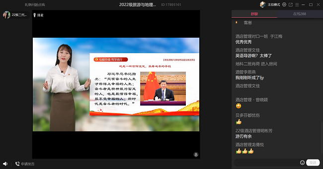 学院以班级为单位组织学生线上集中学习,同学们通过手机、平板、电脑等媒介,在腾讯会议平台参与这堂特殊的思政大课。通过观看学校的宣传片,新同学们充分了解了学校的发展历程、办学理念、学校特色和办学成绩等,用心体会学校历史,感受校园风采。