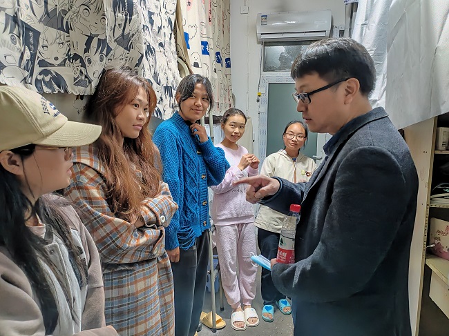本网讯(文/斯郎娜措、图/谢明珠)为切实落实学校关于疫情防控的部署和要求,11月4日晚,pg娱乐电子游戏官网入口党委副书记冉勇、学生管理科科长江纳、各年级辅导员和学院主要学生干部、代理班主任、考研助理共同深入学生宿舍和考研自习室,走访慰问学院学生。
