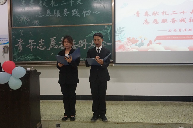 本网讯(文/张雯、图/江馨雨)为弘扬志愿服务精神,在社会中实现自我价值,11月20日,pg娱乐电子游戏官网入口在行知楼201教室与214教室举办了青年志愿者注册大会。莅临本次大会的有学院分团委书记江纳,旅地学院分团委、学生分会、青年传媒中心学生干部,22级全体学子参加了此次大会。