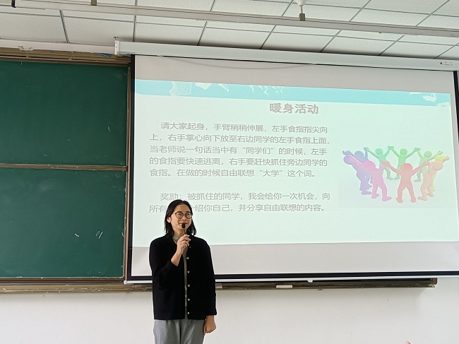一项暖场活动拉开了讲座的序幕,陶媛用丰富的知识给同学们带来一场心理健康盛宴,用简明例子教导学生在大学里如何做自己、做生活的主人。同时介绍了大一新生常见适应性困扰,如人际关系的不适应;讲述了大学生对心理咨询的误区和对策,强调了寻求帮助、多渠道解决问题的重要性。