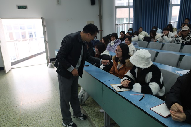 首先,王学涛分析了当前的就业形势,特别近几年毕业生人数不断增加,就业压力越来越大,提醒同学们及早树立职业目标。接着,王学涛结合自身工作经历,鼓励同学们把精力集中到学习上,做到学有所成,未来要到国家最需要的地方去。最后,王学涛给同学们讲解如何做好职业规划,强调同学们要多了解自己就业目标的需求,做好自己职业发展规划,尽快行动起来,在大学期间要提升自己的各方面能力,为就业做好各项准备,在大学毕业时具备优秀地理教师的素质。