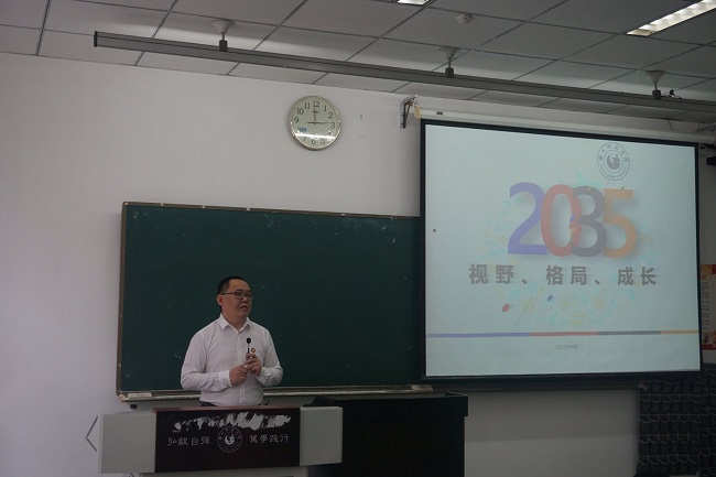 于科先从视野、格局和成长三个方面告诉同学们“语言是一个国家的战略手段”。他从视野和格局谈起自己在国外的所见所闻,启发同学们多出去开拓眼界,学习不一样的经验。他为同学们展示了学校优秀的交换生在不同国家学习的收获和个人的成长。于科先希望同学们切实增强自己的内驱力,积极开拓眼界,跳出固定思维,勇于迎接挑战,不断发展自己,勇立时代潮头,争当时代先锋,切实肩负起时代赋予的使命责任。