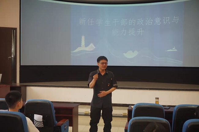 江纳邀请每一位学生干部分别作了自我介绍,为大家增进感情、更好地合作共事搭建了良好的平台。孟凡帅从心态、适应、学习三个角度,引导学生干部要深入学习贯彻习近平新时代中国特色社会主义思想,并运用习近平新时代中国特色社会主义思想的世界观和方法论指导工作,解决问题,凝心聚力,勇创辉煌。分团委、学生分会以及青年传媒中心的学生干部代表相继发言,表达了将兢兢业业地为同学们、为学院服好务的决心。冉勇作了以“新任学生干部的政治意识与能力提升”为主题的培训,从坚定政治方向、提升学生干部组织能力、沟通能力、矛盾化解能力、情商成长、能力提升以及成果品牌化等方面对学生干部们提出了殷切期望。