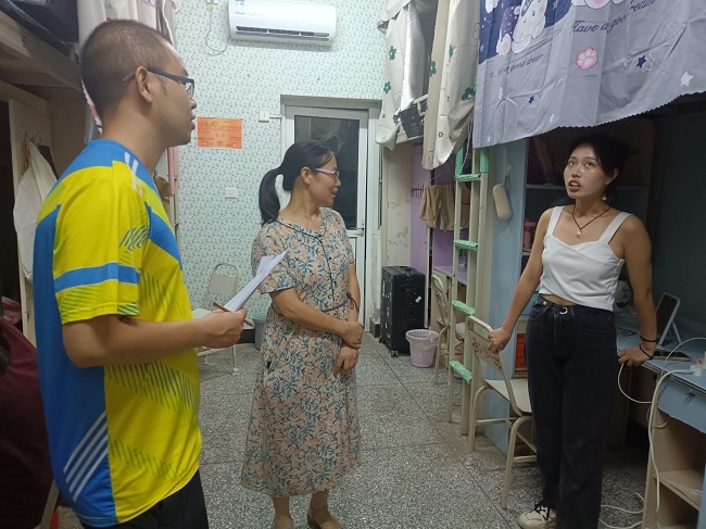 在走访过程中,学院领导和老师们与新同学们亲切交谈。徐秀云表示,进入新的环境意味着面临更多机遇,希望同学们尽早做好规划,在新的学期找到新的目标并为之努力奋斗。郭剑英向同学们介绍了学校、学院的基本情况,针对专升本新生在学习和生活上的困惑一一作了解答。冉勇鼓励同学们积极调整自己的状态,相互之间互帮互助,早日适应旅地生活,珍惜时间,不负青春。孙永兴向同学们介绍了学院情况和学科专业特点、良好的发展前景,勉励大家要以更高标准要求自己,尽早投入学习。