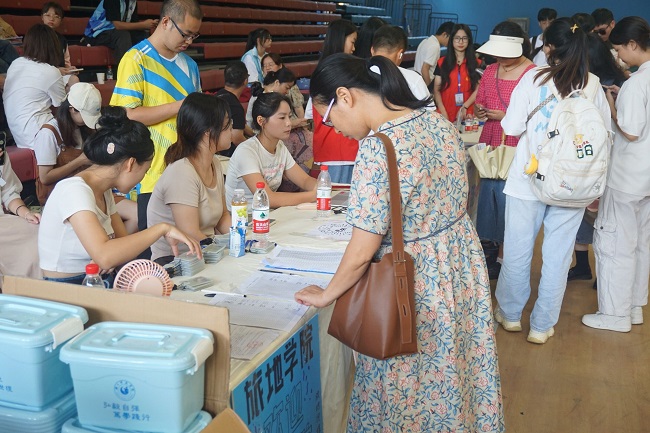从校门口到新生报到处,校园里随处可见一个个奔走忙碌的志愿者们,他们挥洒着汗水,迎来一张张崭新的面孔。志愿者们以饱满的热情为前来报到的新生们提供贴心的服务,让从四面八方远道而来的学子们倍感学院的温暖。